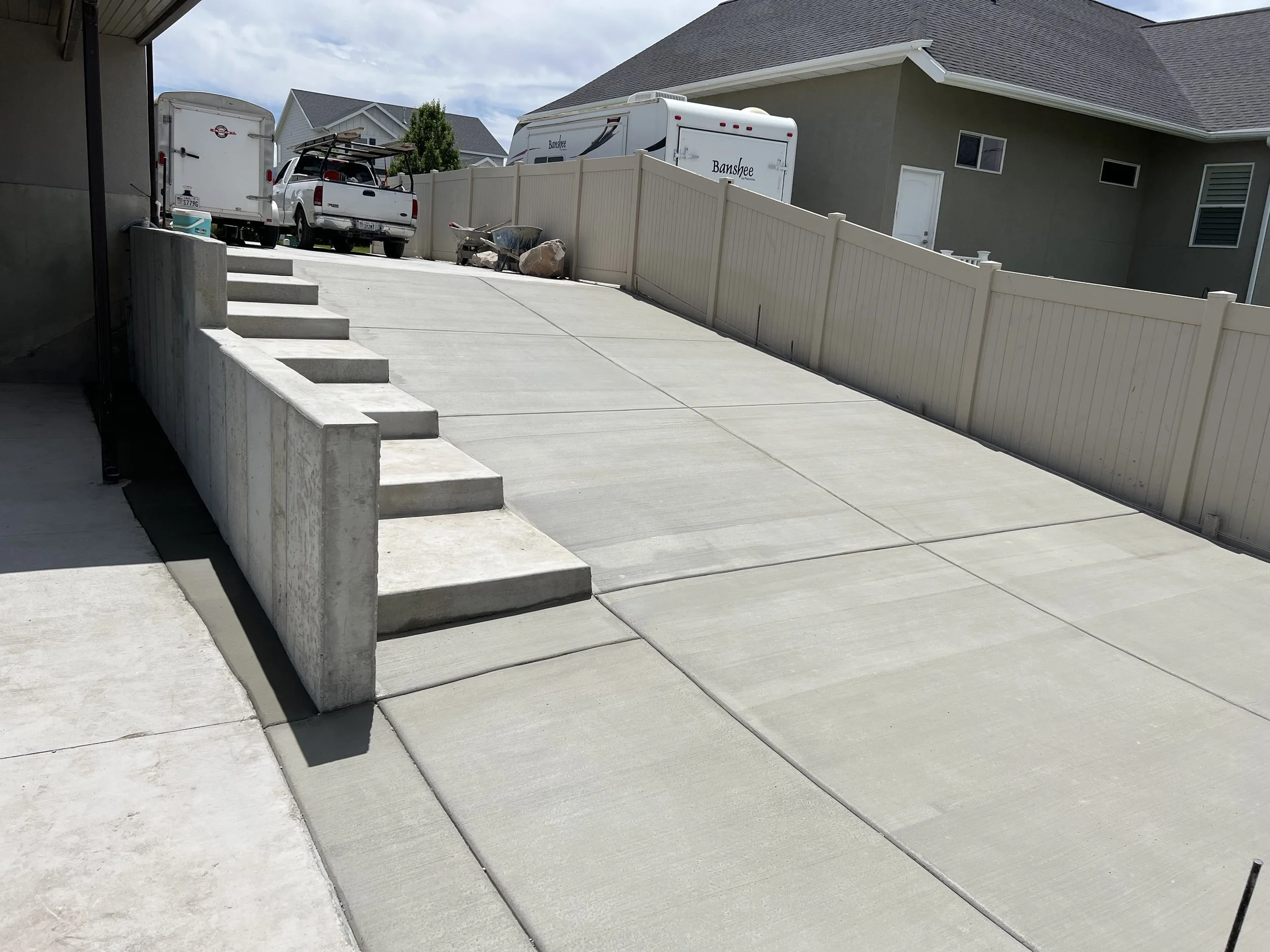 Flatwork includes the concrete surfaces you use every day; driveways, patios, walkways, RV pads, and more. We build flatwork for homeowners who want clean finishes, proper prep, and concrete that holds up long after the pour.